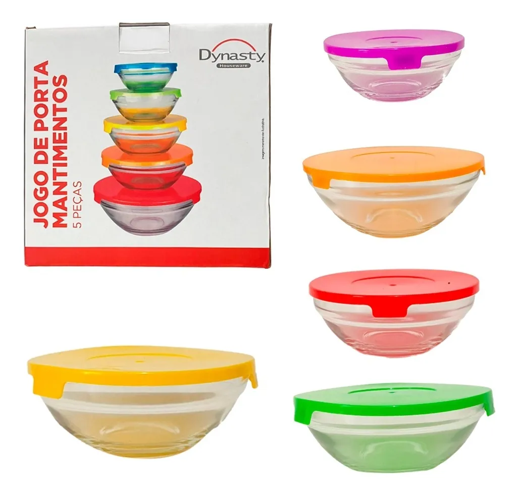 Jogo de Potes de Vidro com Tampa Redondo 5 Peças